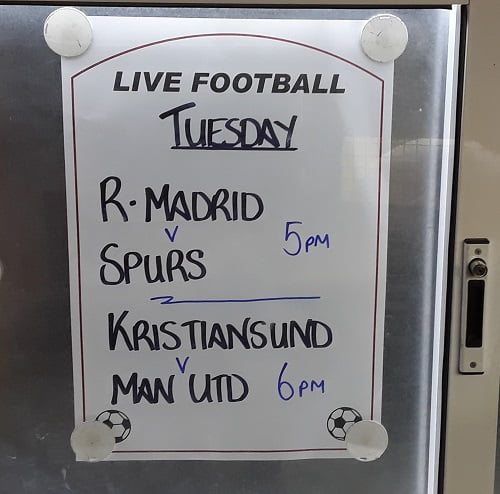 …og i morgen tirsdag kan vi på flere barer se at Kristiansund spiller mot Man U, også på Lanzarote!