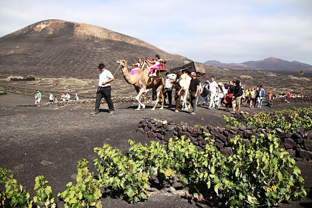 Klokken 10.30 vil arbeidere i sine tradisjonelle drakter ta med seg sine kameler ut på markene ved bodegaen. Der vil de samle inn druer som allerede er plukket. Interesserte tilskuere følger bak kamelene.