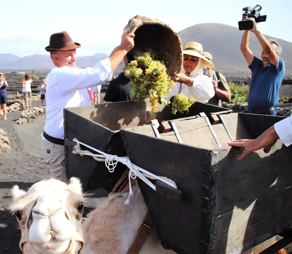 Klokken 10.30 vil arbeidere i sine tradisjonelle drakter ta med seg sine kameler ut på markene ved bodegaen. Der vil de samle inn druer som allerede er plukket. Interesserte tilskuere følger bak kamelene.