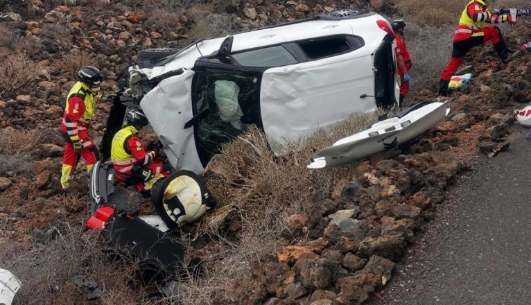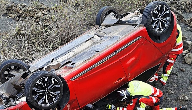 På ettermiddagen mandag 22.september kjørte denne bilen av veien og veltet. Ulykken skjedde på veien LZ.201 i Haria kommune, nord på Lanzarote.