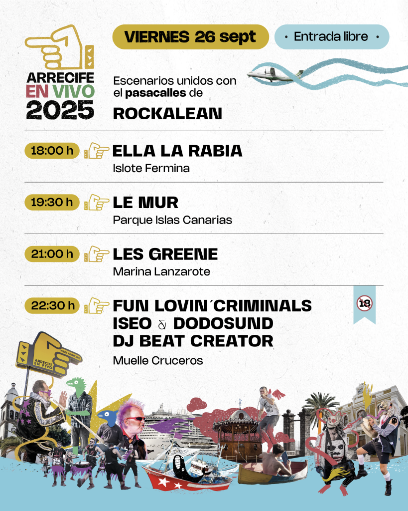Det er konserter over hele byen i kveld, når festivalen Arrecife en Vivo, Levende Arrecife går inn i sin tredje fredag på rad med heftig musikk! Det mest kjente bandet er nok «Fun Lovin´Criminals» fra New York, som spiller ved cruisehavna i Arrecife kl.22.30. Alle konsertene er gratis.