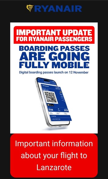 – Passasjerer kan ikke lenger bruke et fysisk boardingkort på papir. De må i stedet bruke det digitale boardingkortet, som genereres i «myRyanair»-appen under innsjekking for å gå om bord, sier Ryanairs driftsdirektør, Dara Brady.