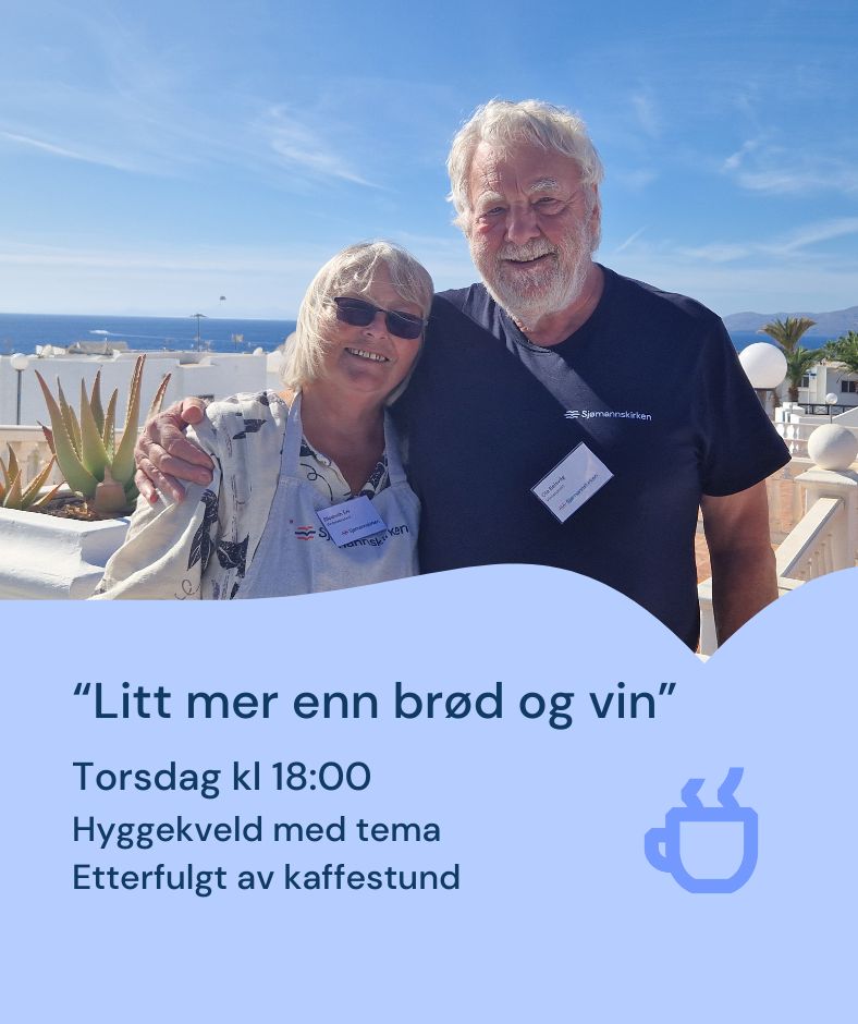 Denne torsdagen er det Ola Beisvåg og Elisabeth Åril som holder hyggekvelden med tema: Litt mer enn brød og vin.