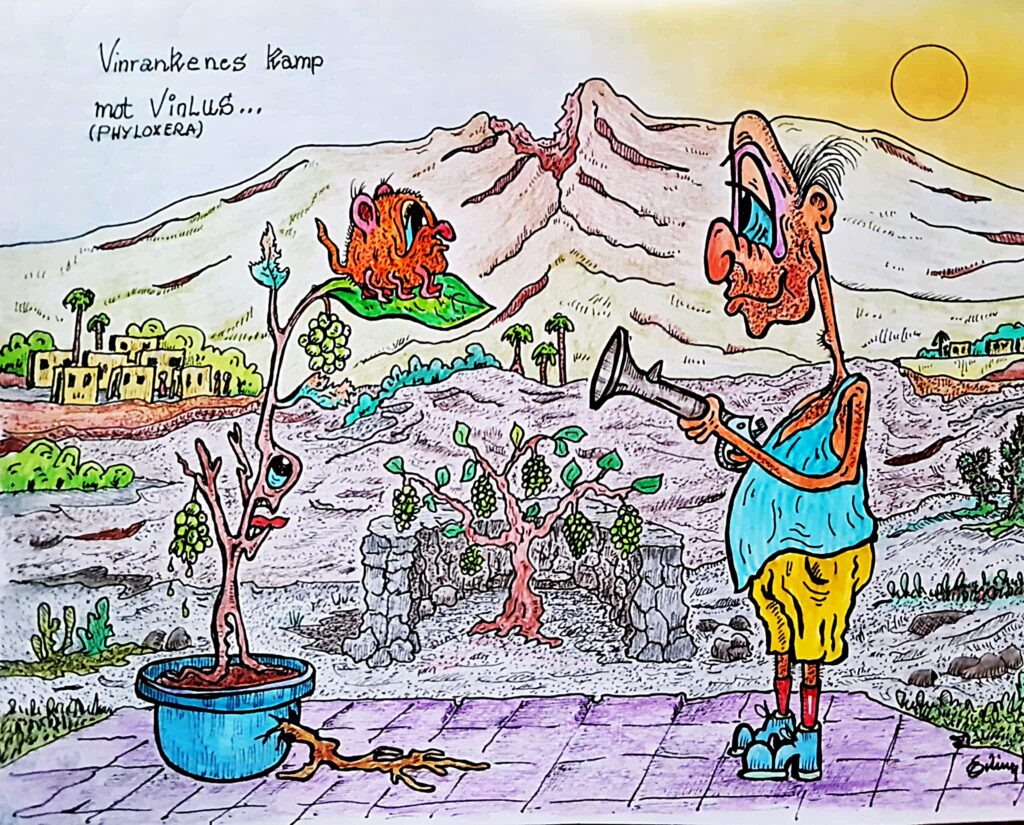 Vår hustegner Erling har fått med seg kampen mot lus på vinrankene, som Lanzaroteposten skrev om tidligere denne uka. Nå er vinrankene fullstendig friskmeldt!