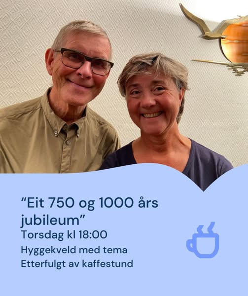 Denne torsdagen er det prest Knut Kaldestad og kona Anne som holder hyggekvelden med tema «Eit 750 og 1000 års jubileum».