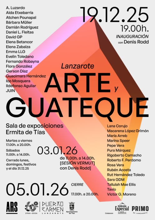 33 kunstnere fra Lanzarote stiller ut sine arbeider, og utstillingen varer til 5.januar 2026. På åpningen i kveld fredag spiller DJ Denis Rodd «passende» musikk, står det i invitasjonen.