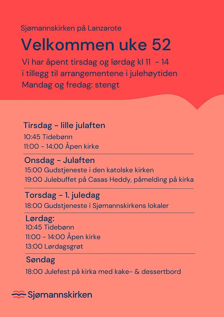 Programmet for julen og nyttåret på Sjømannskirken på Lanzarote ble presentert i Lanzaroteposten i går onsdag.
