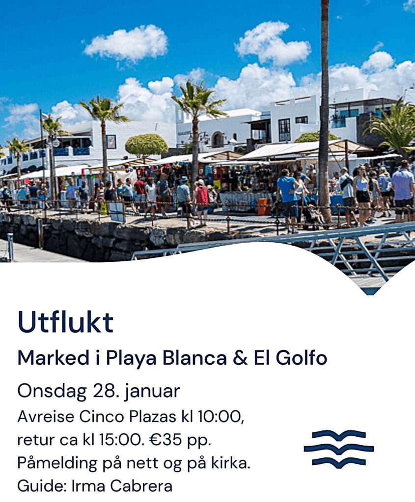 Meld deg på på kirka eller på nett https://www.sjomannskirken.no/…/marked-i-playa-blanca…/