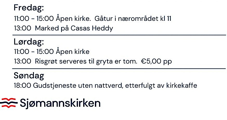 Sjømannskirken på Lanzarote ligger i Puerto del Carmen, nedenfor TUI-hotellet Cinco Plazas. Gå til høyre for HiperDino-butikken. Kirken er godt skiltet. Kontaktadresser finner man HER.