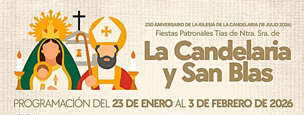 Tias kommune på Lanzarote feirer sine to skytshelgener, La Candelaria og San Blas fra og med i dag fram til 3.februar. Mer enn 50 arrangementer skal utføres under festivalen, med parader, matlaging, nattløp, kanarisk bryting, folklore, religiøse arrangementer, og forestillinger for barn. Hele programmet (på spansk) finner man ved å klikke HER.