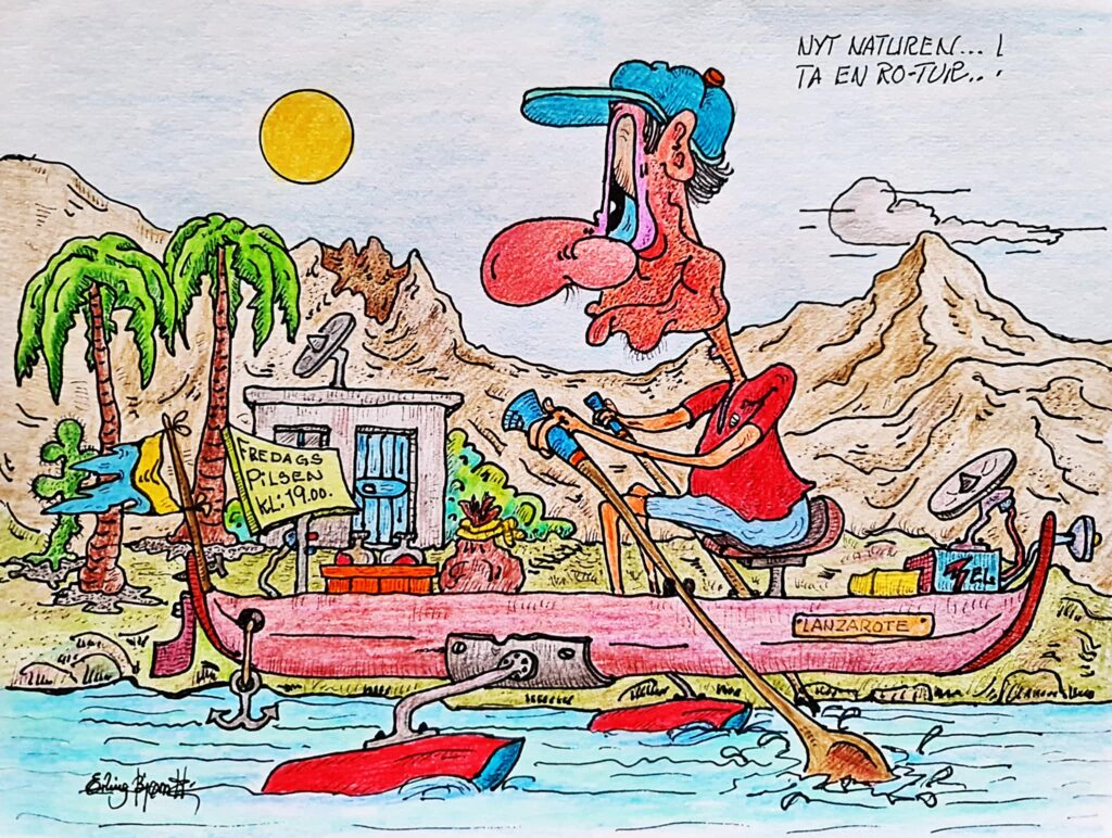 Vår hustegner foreslår at man kan ta seg en ro-tur…men det er viktig å være på land igjen kl.19, for da…