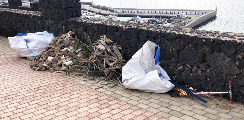 Spanjolene er flinke til å rydde opp. Daglig ser vi oransjekledde kvinner og menn som rydder langs gater og i rundkjøringer, og nå også hengende i stropper og tau i skråninger for å plukke søppel. Det er tydelig at det er et stort prosjekt på gang for å rydde øya.