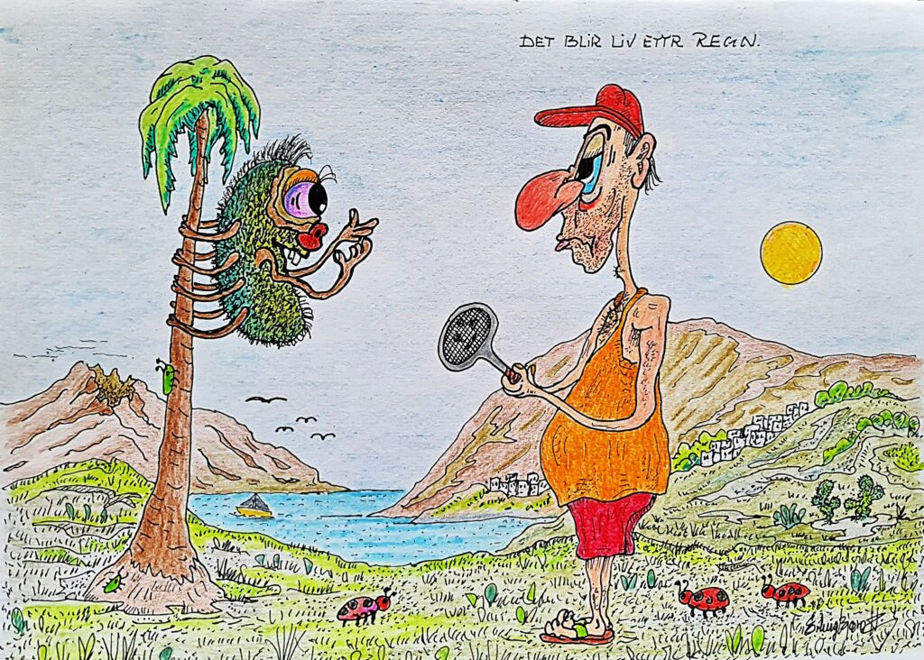 Vår hustegner har lest i Lanzaroteposten om marihønene som nå har våknet til liv på Lanzarote etter en heller våt vinter. Men det stopper ikke fredagspilsen!