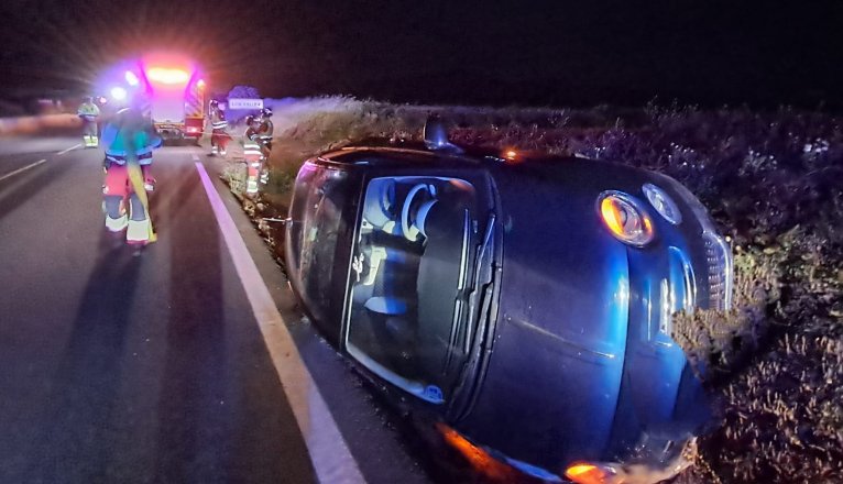 Tidlig lørdag morgen veltet denne bilen utfor veien LZ-10 mellom Los Valles og landsbyen Teguise.